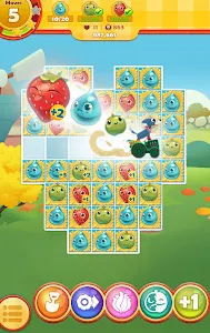In each level, you will get one different mission that is mainly in the form of having to collect all kinds and the number of given fruits or vegetables in a certain number of turns. A special point is that you can combine elements in the game to create another interesting animal and get a higher score. For example, players will combine three eggs and create one duck.